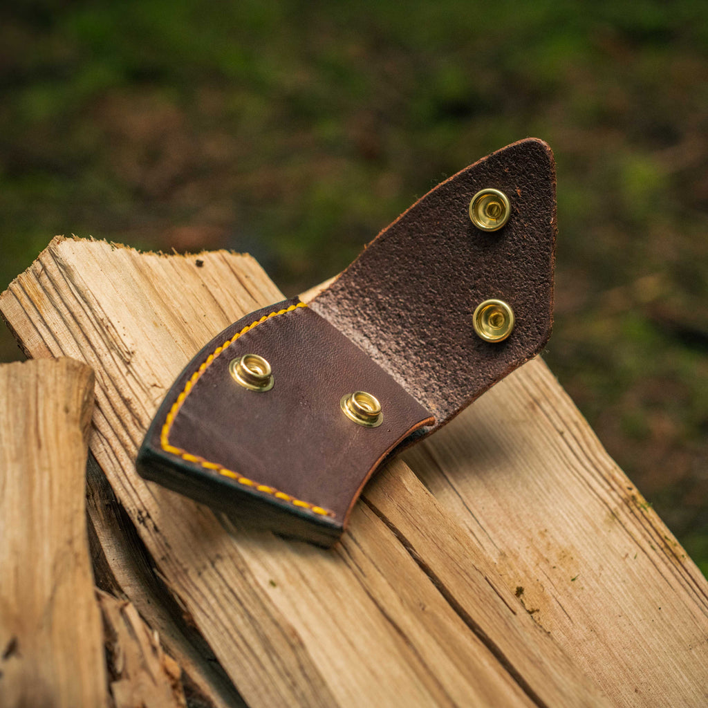 This leather sheath offers a compact replacement to the standard cover that comes with the GB Small Forest Axe.